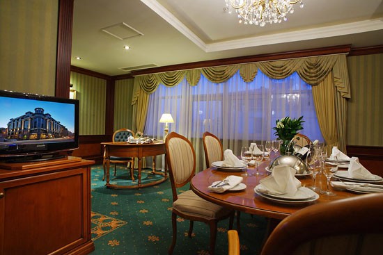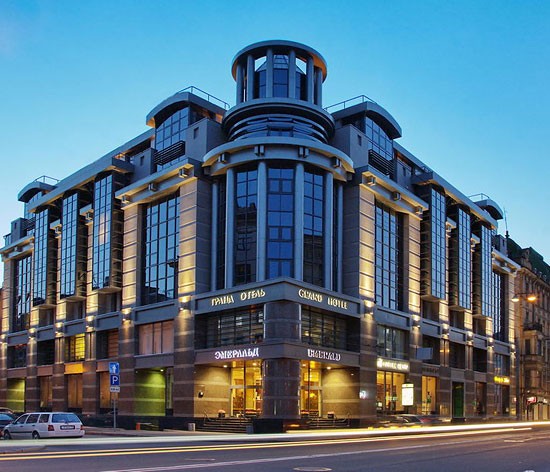 L`hotel di San Pietroburgo Grand Hotel Emerald e´ situato nel centro storico di San Pietroburgo, poco distante dalla Prospettiva Nevsky. L´hotel offre ai clienti un servizio di ottimo livello. L´hotel "Emerald" e´ stato costruito nel 2003 su progetto del noto architetto moscovita Gherassimov. I suoi interni colpiscono per il lusso delle rifiniture, per le quali sono stati usati marmo, pietre naturali semipreziose, stucchi, legni pregiati e rari cristalli che rendono l´albergo pienamente degno del suo nome: "Emerald" vuol dire infatti "Smeraldo". L`hotel dispone di 93 camere spaziose, luminose ed arredate in stile classico, ognuna con controllo indipendente del riscaldamento e aria condizionata,TV interattiva, internet, ottimo panorama. Nell`hotel Emerald San Pietroburgo e`poi possibile gustare ottimi piatti presso il ristorante Emerald, l`atrium cafe Versailles ed il lobby bar Suvorovsky. Completano i servizi dell`hotel una sala banchetti, una sala conferenze, un centro fitness, salone di bellezza, casino, parrucchiere, lavanderia a secco, parcheggio, bancomat e servizio in stanza 24 ore.